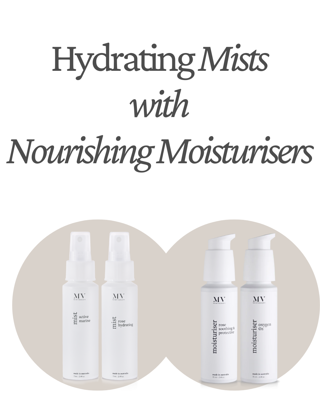 This means every bottle of MV moisturiser is a powerhouse. You can use it ultra-rich, featherlight, or anywhere in between by simply adapting it with one of our two hydrating facial mists.